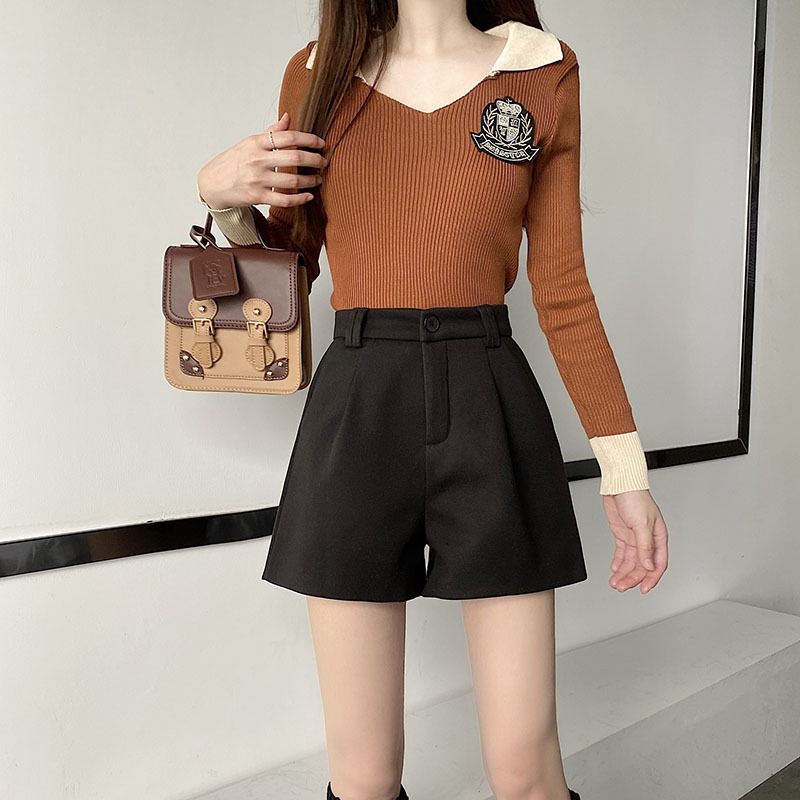 Black Wool High-waisted Slimming Plus-size New Korean-style Early