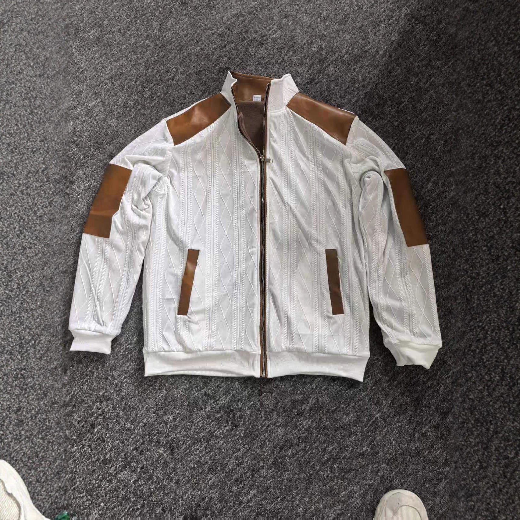 Color-block Textured Fleece-lined Zip-up Casual Jacket