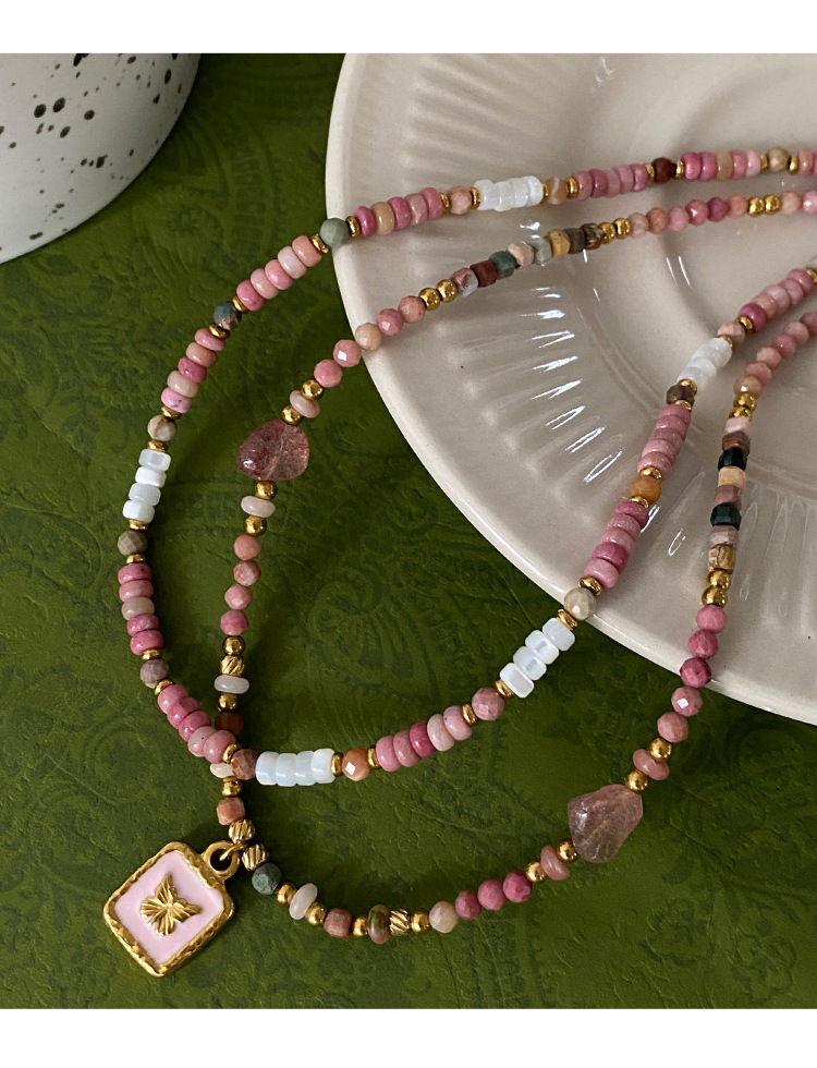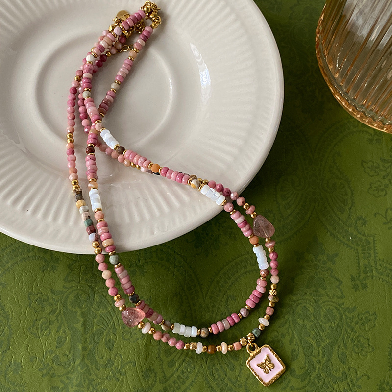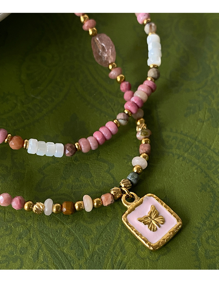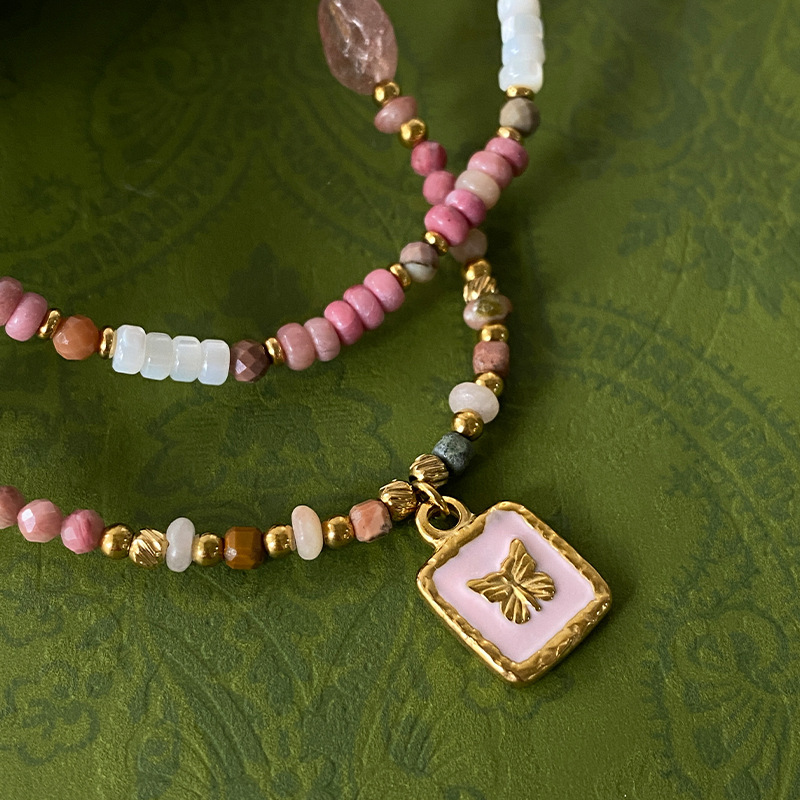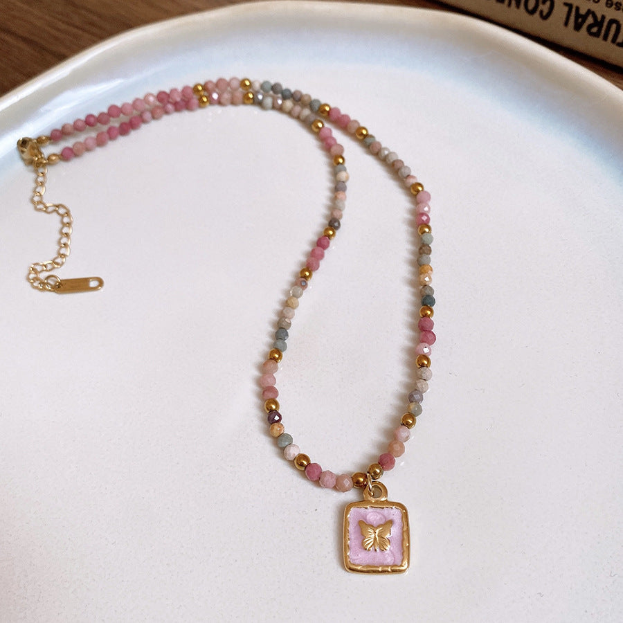 Titanium Steel Oil-drip Red Agate Bead Necklace