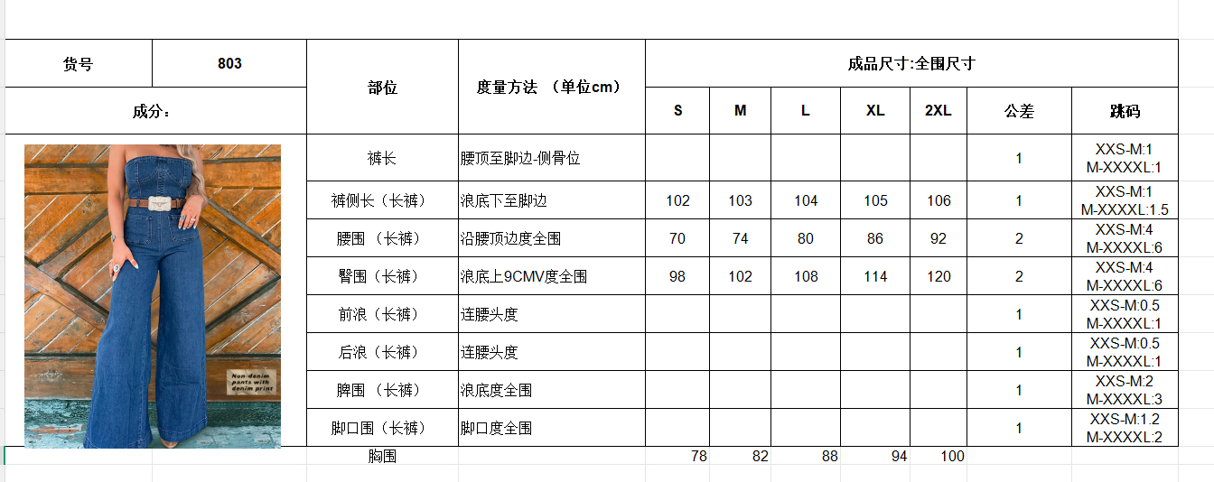 Pattern design: A strapless, sleeveless jumpsuit with high-waisted wide-leg pants. The fit is slimming and accentuates a narrow waist, while the wide-leg cut hides flaws and elongates the leg line.