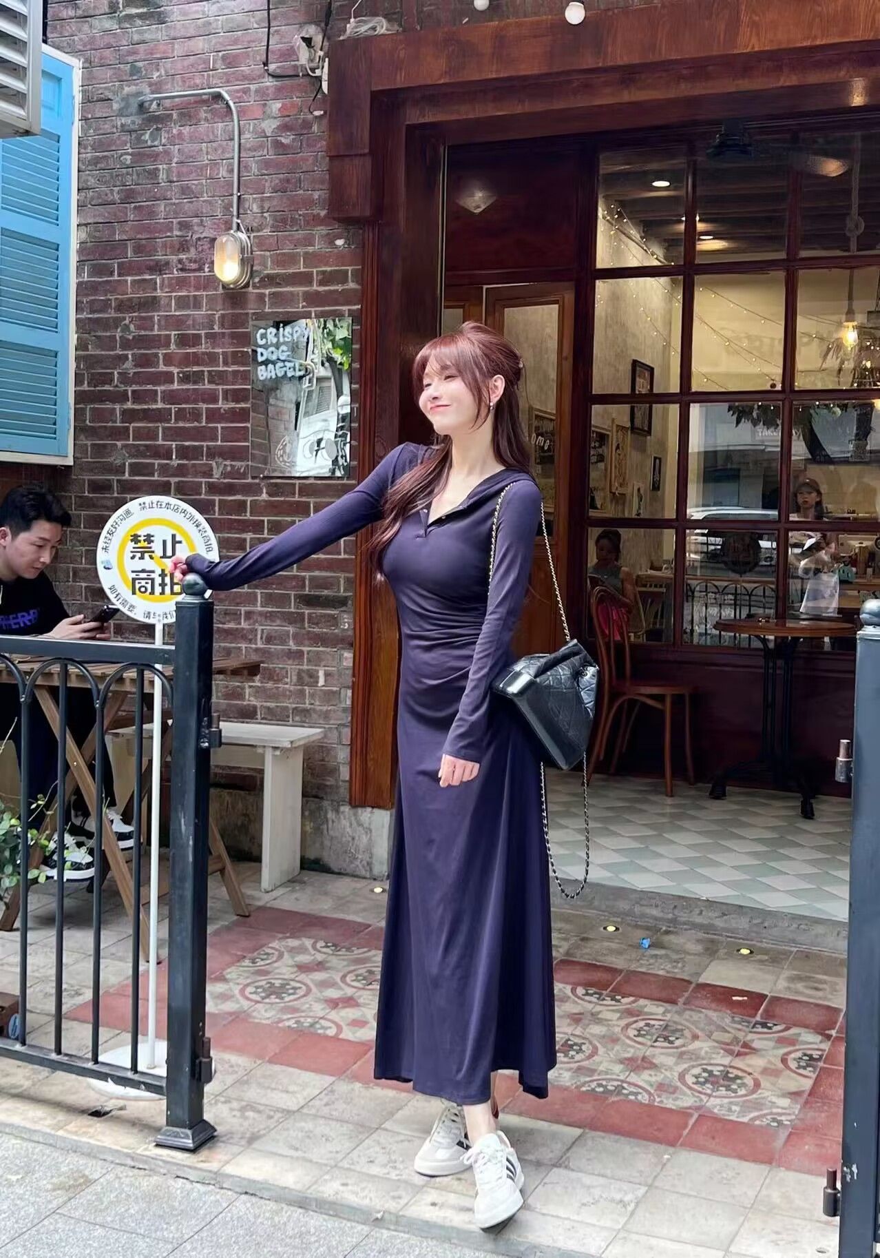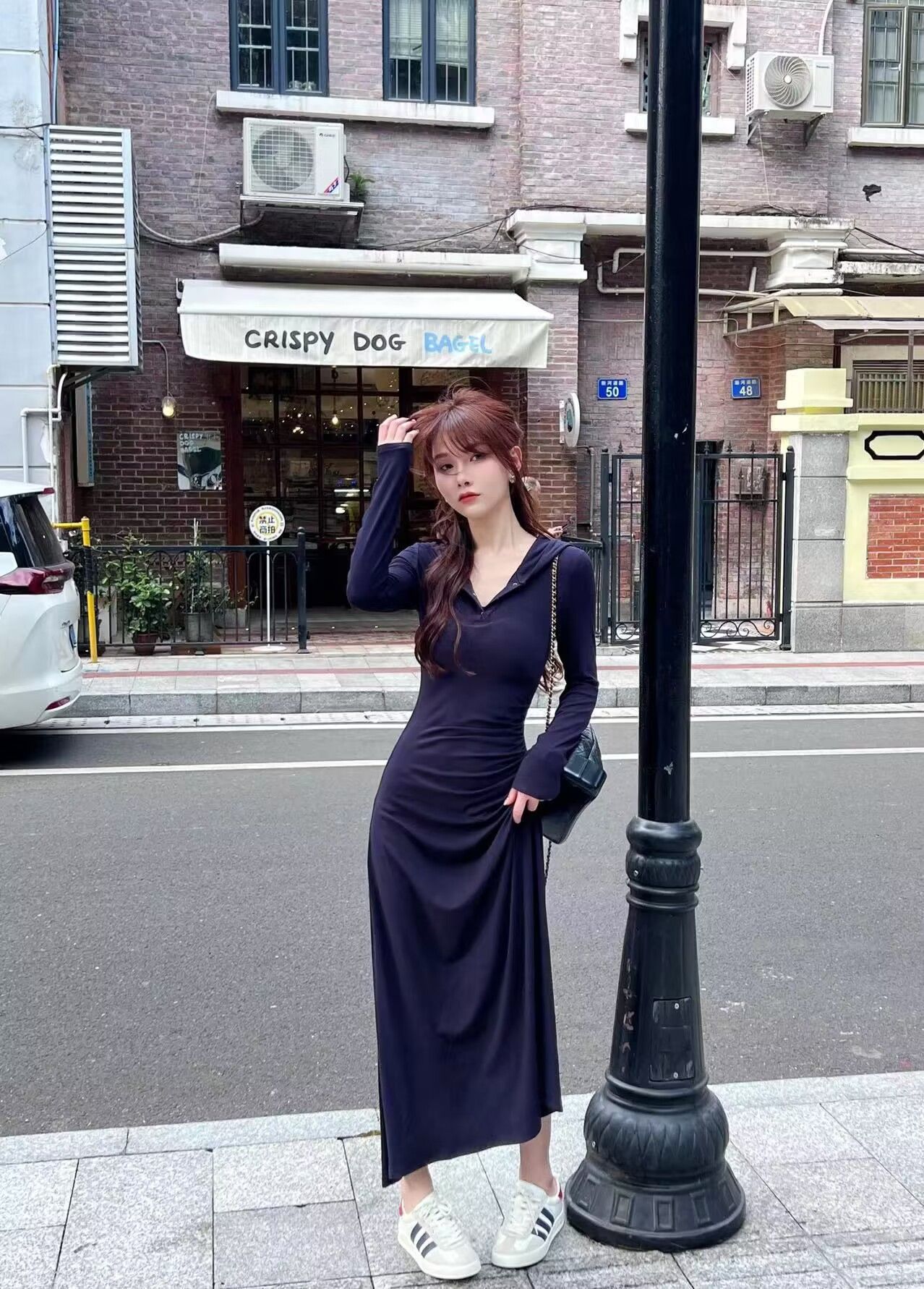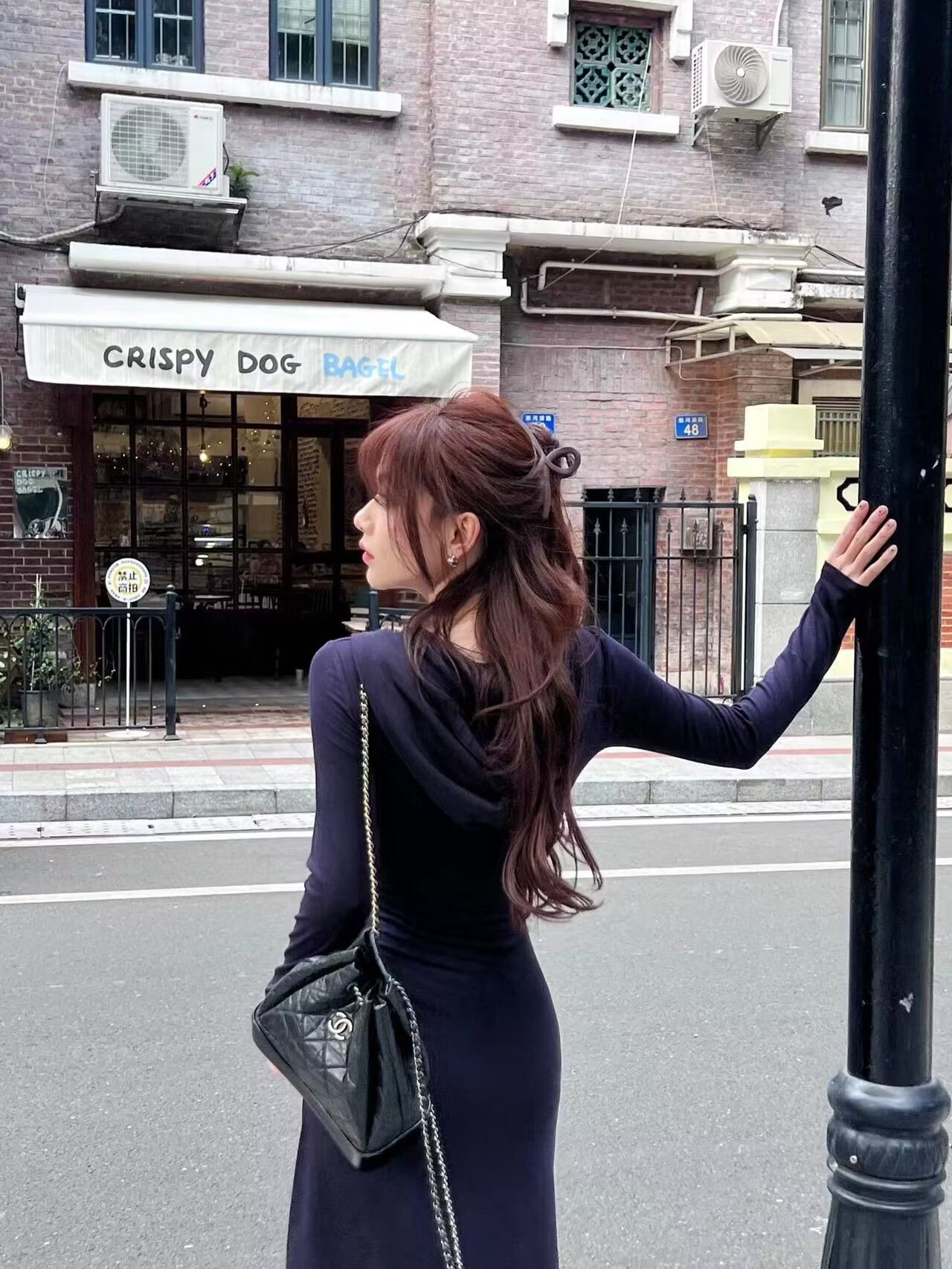 Womens Slim-Fit Long-Sleeve Figure-Lifting Hooded Dress